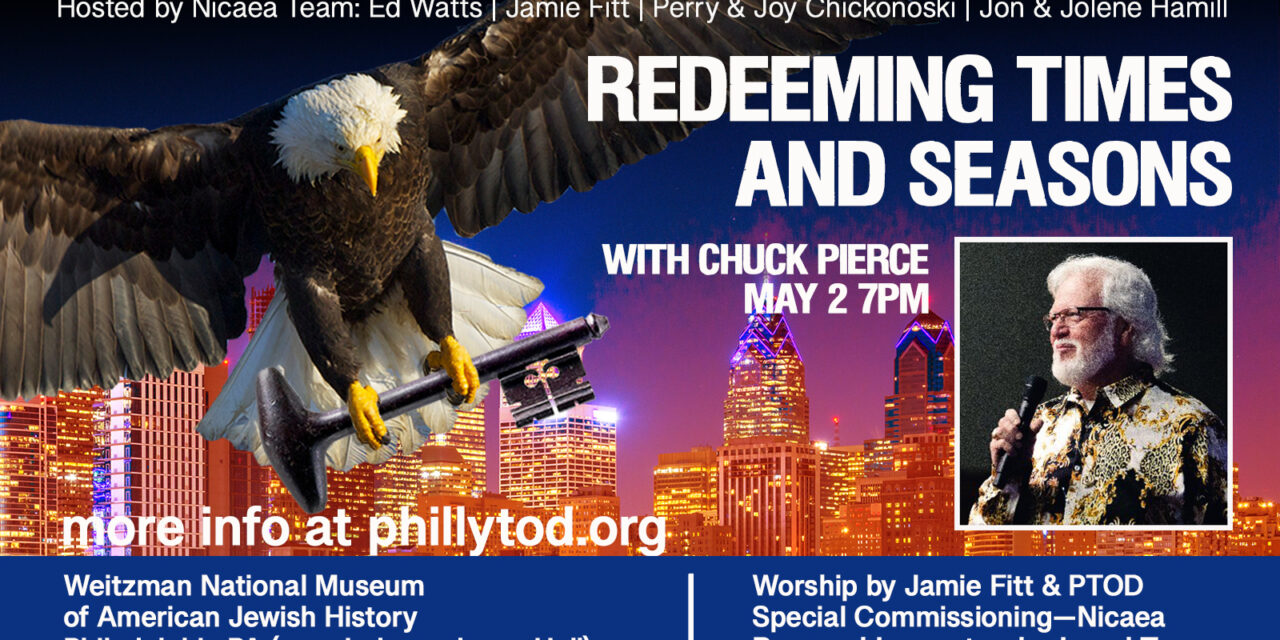 7pm MAY 2—REDEEMING TIMES AND SEASONS! CHUCK PIERCE makes a last-minute trip to Philadelphia for a last-minute worship night including a special commissioning service for the Nicaea Summit/Rescued Lampstand Tour. You don’t want to miss!